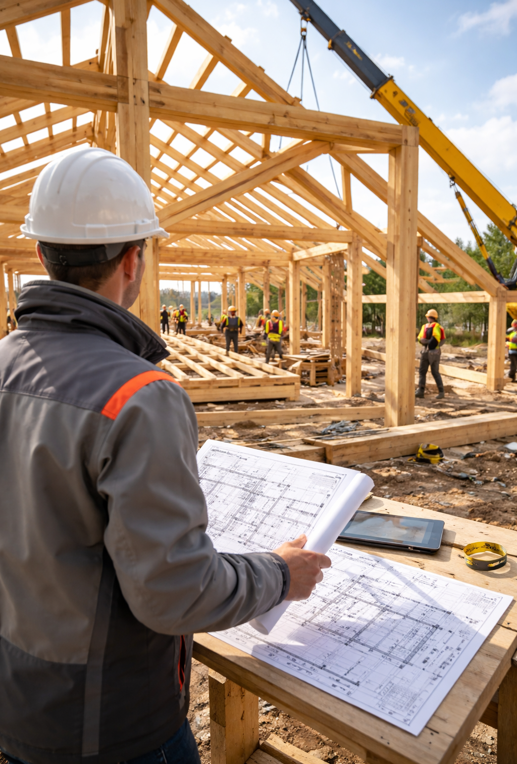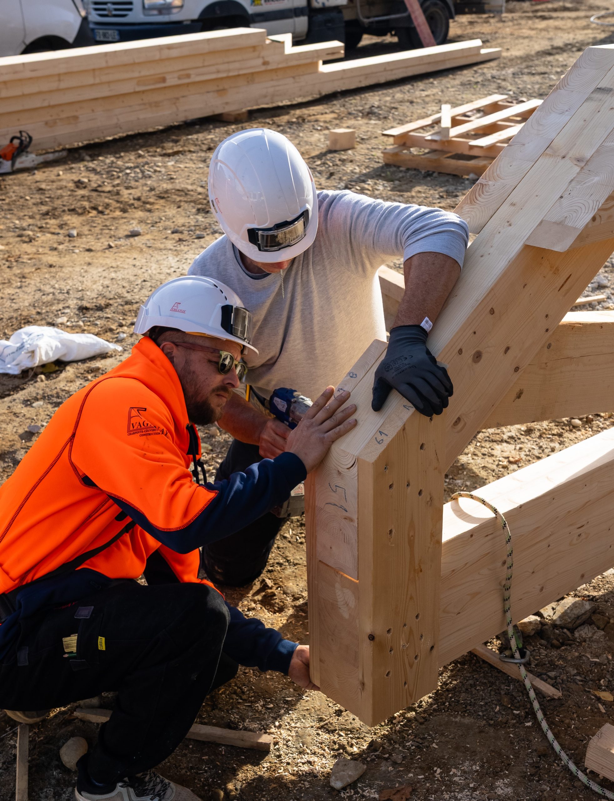 Aujourd’hui entourés d’une cinquantaine de compagnons, nous avons une autonomie dans les études, la fabrication, les moyens de transports et de levages qui nous permettent de mettre à votre service nos 40 années de savoir-faire dans la réalisation de tous types de charpentes, de couvertures ou de construction de bâtiments à ossature bois.